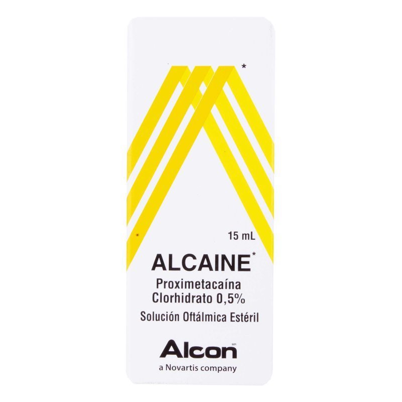 Alcaine es un anestésico topical autorizado por INVIMA (Registro 1995M-0000056) que contiene proparacaina clorhidrato (0.5%). Indicado para anestesia superficial del ojo en procedimientos como tonometría, gonioscopía o extracción de cuerpos extraños. Posología: 1-2 gotas en el ojo afectado. Contraindicado en hipersensibilidad. Posibles reacciones adversas: irritación ocular. Presentación: Frasco x 15 ml. Consulte prospecto en INVIMA.gov.co.