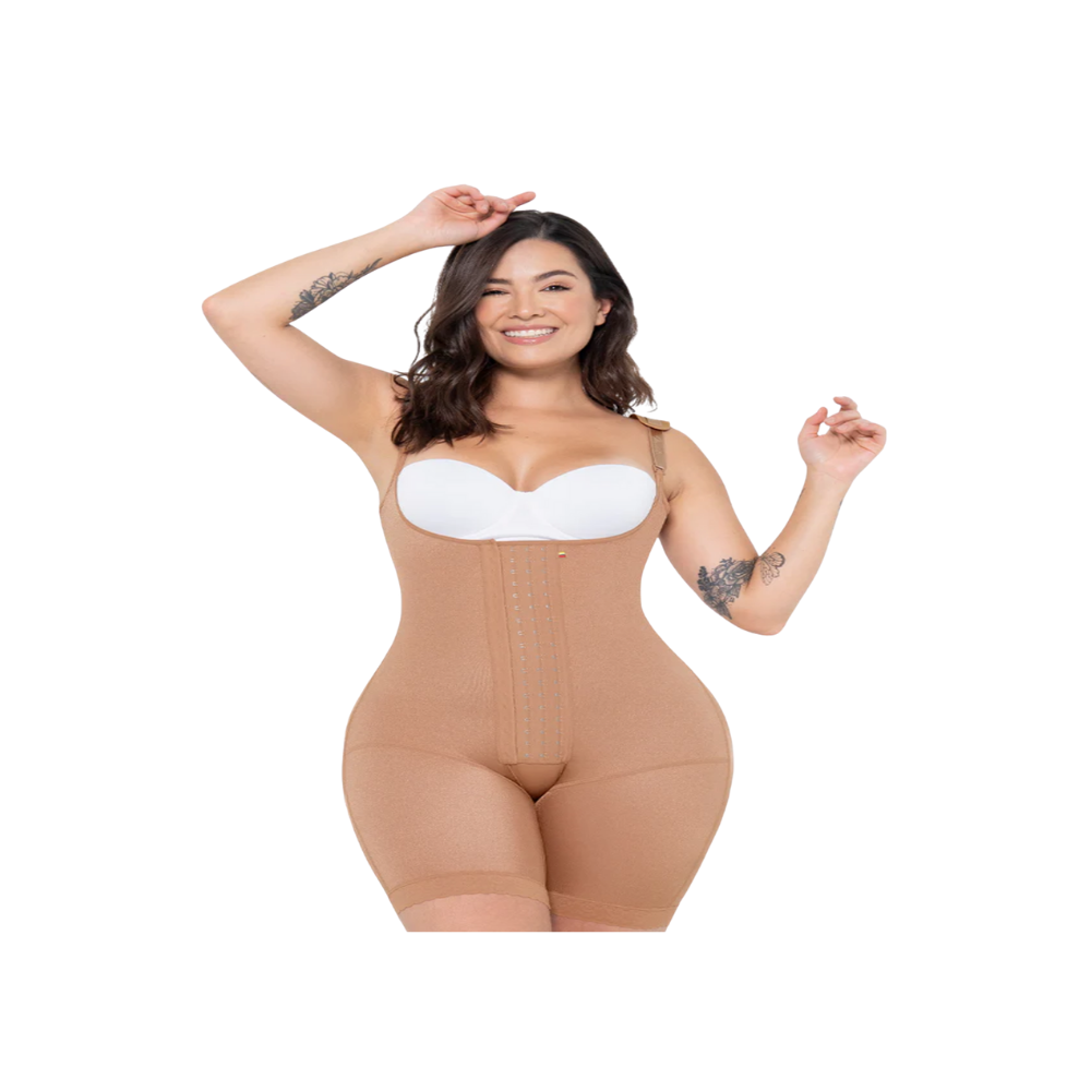 FAJA POSTQUIRURGICA MEDIA PIERNA ABERTURA PERINEAL Y TANGA COLOR MOKA TALLA S 32