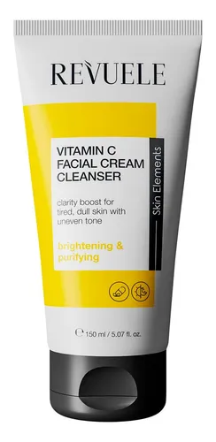 El Limpiador Facial en Crema con Vitamina C 150mL de REVUELE ayuda a eliminar impurezas y restos de maquillaje mientras aporta frescura y luminosidad a la piel.