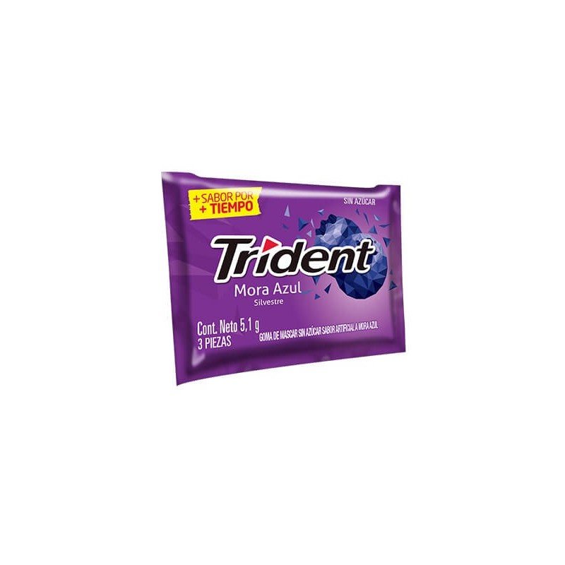 TRIDENT Mora 3 Piezas, chicles sin azúcar sabor a mora, en presentación de 3 unidades.